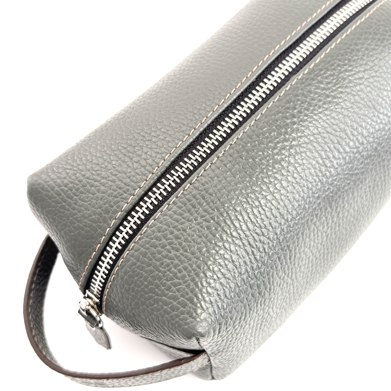 Neceser din piele naturală, realizat manual. Spațios, rezistent și potrivit pentru organizarea produselor de îngrijire, acasă sau în călătorii.
