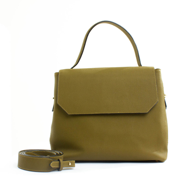 Geantă TINA Verde Olive din piele naturală – eleganță, practică și atemporală Geanta TINA Verde Olive este un model emblematic din colecția Pensées, creată pentru ritmul cotidian. Această geantă din piele naturală de înaltă calitate îmbină designul structurat cu o organizare eficientă, fiind perfectă pentru birou, ieșiri în oraș sau întâlniri casual. Structura compactă, dar bine gândită, o face ușor de integrat în orice ținută, de la casual la office. Interiorul este atent compartimentat pentru a oferi o organizare eficientă. Acesta include două compartimente spațioase, separate de un compartiment central cu fermoar, ideal pentru obiectele mai valoroase. În plus, geanta oferă un buzunar interior cu fermoar și două buzunare deschise – perfecte pentru telefon, chei sau alte lucruri mărunte. Se poate purta cu mânerul fix sau cu bareta de umăr reglabilă, în funcție de context. Finisajele metalice adaugă un plus de rafinament, iar pielea naturală oferă durabilitate. De ce să alegi geanta TINA Verde Olive? Este ideală pentru ritmul cotidian, fiind elegantă, practică și atent compartimentată. Îmbină designul structurat cu o organizare eficientă, fiind perfectă pentru birou sau ieșiri în oraș. Pielea naturală de înaltă calitate oferă durabilitate și un aspect rafinat. Are un design atemporal și versatil, fiind ușor de integrat în orice ținută. Este un produs lucrat cu grijă, apreciat pentru echilibrul între funcționalitate și estetică. Dimensiuni Lungime: 30 cm Înălțime: 27 cm Lățime: 9 cm Materiale și detalii Exterior: 100% piele naturală (bovină) Interior: căptușeală din canvas de bumbac Mâner: 60 cm reglabil în 3 poziții Bareta de umăr reglabilă: 96 cm – 118 cm (lățime 3 cm) Accesorii metalice Geanta TINA Verde Olive se remarcă prin combinația subtilă de culori neutre și detalii atent alese – o geantă cu personalitate, care nu trece neobservată. Este alegerea ideală pentru femeile care apreciază produsele lucrate cu grijă, cu un design atemporal și versatil.