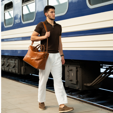 Geantă de voiaj din piele naturală bovină, concepută pentru călătorii și escapade de weekend. Compartiment spațios și design funcțional pentru transport confortabil. Produs în Republica Moldova