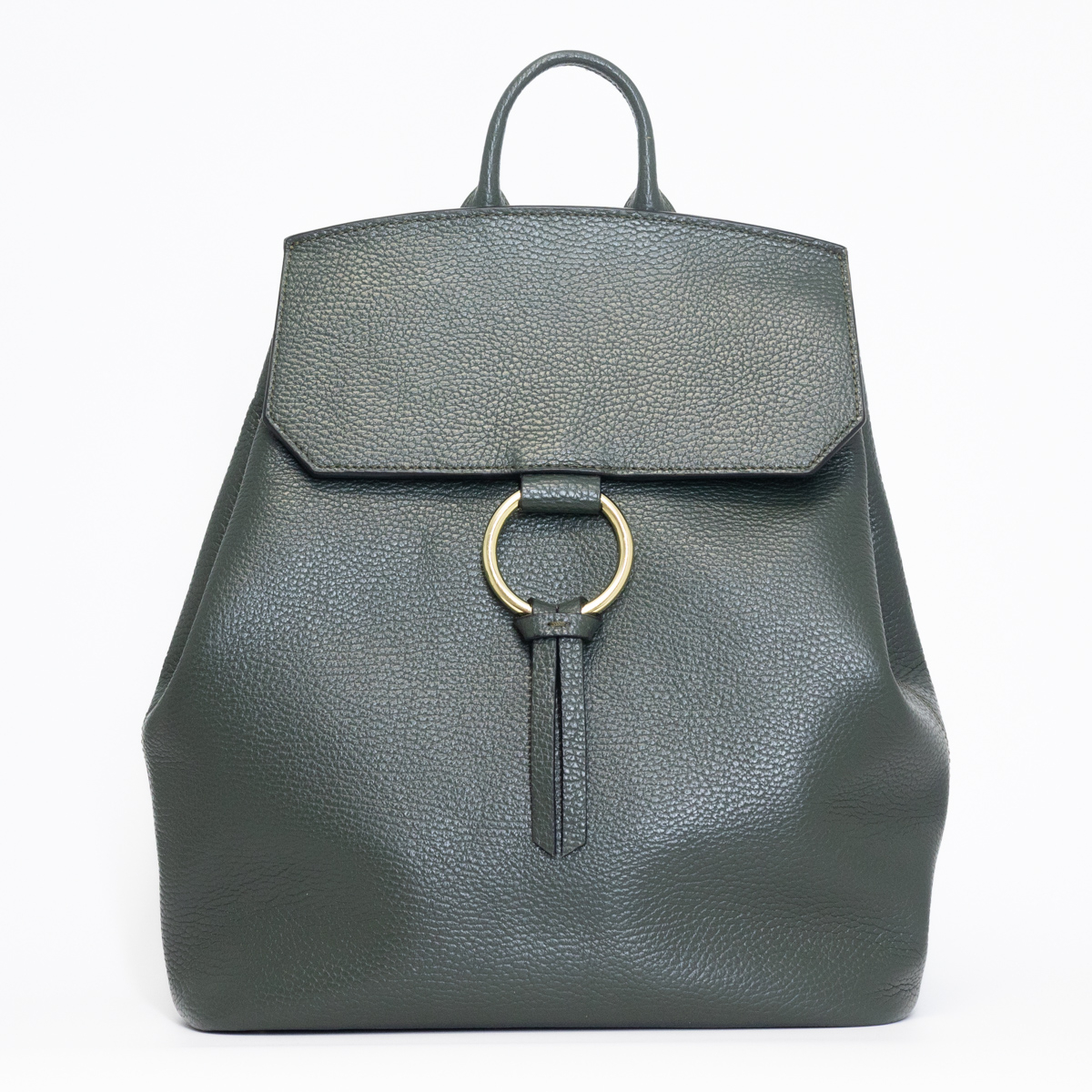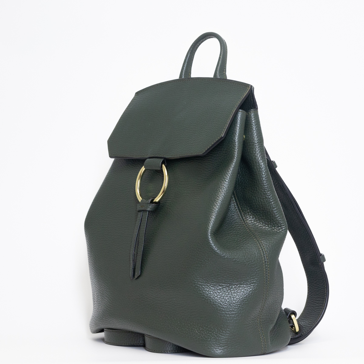 Rucsacul cu Inel din Piele Naturală Verde Mlaștină – Eleganță Minimalistă și Detaliu Memorabil