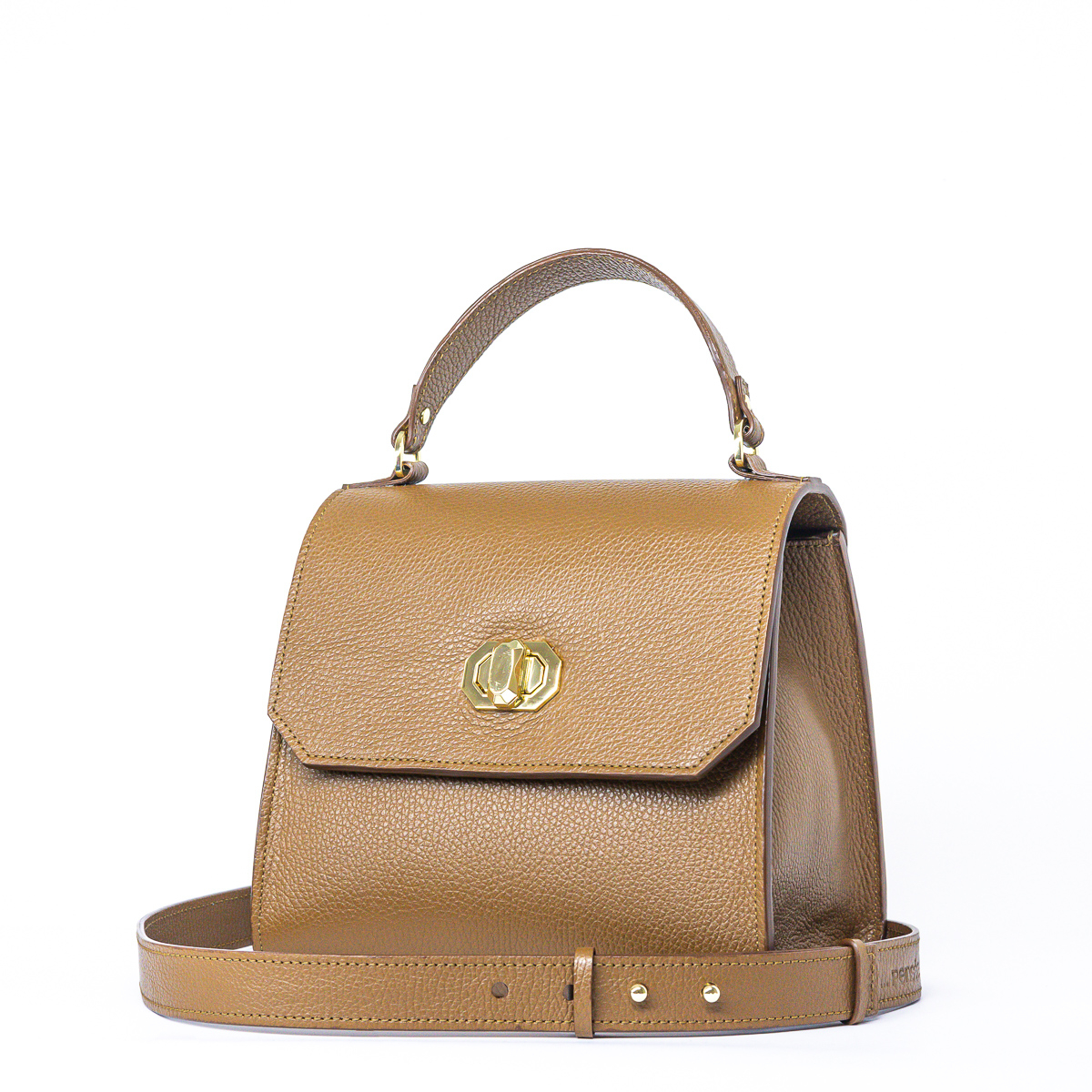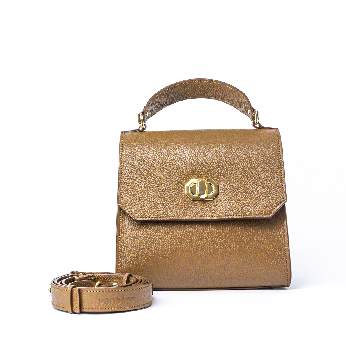Geanta LILI Maro Caramel din piele naturală reprezintă echilibrul perfect între o formă clară, cu o siluetă geometrică bine definită, și o funcționalitate discretă. Datorită structurii sale rigide, este o piesă practică și sofisticată, creată pentru femeia care apreciază eleganța fără efort.