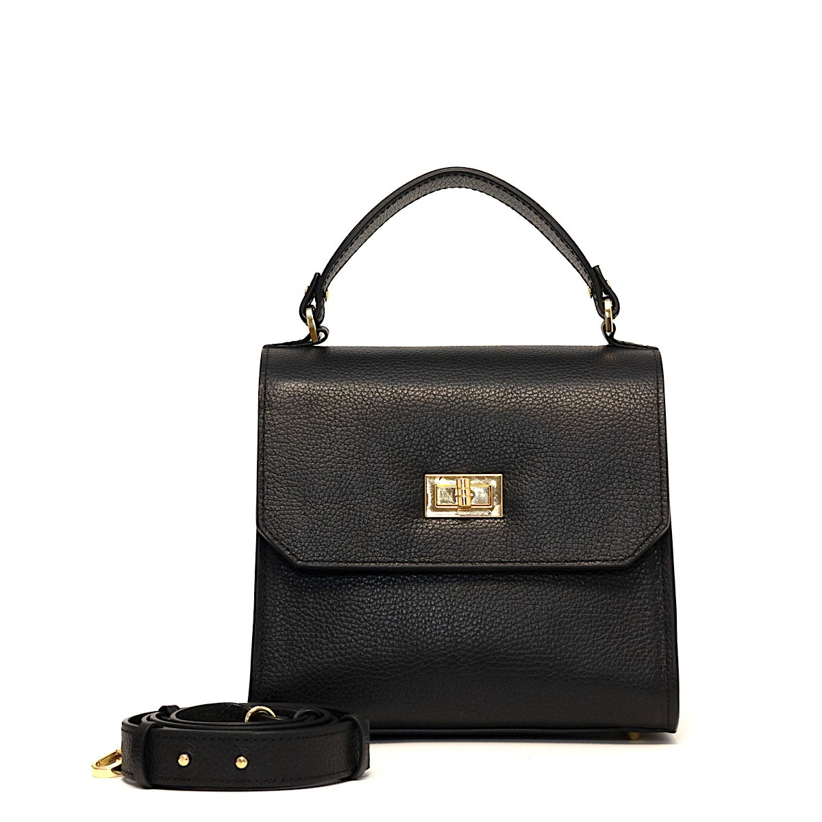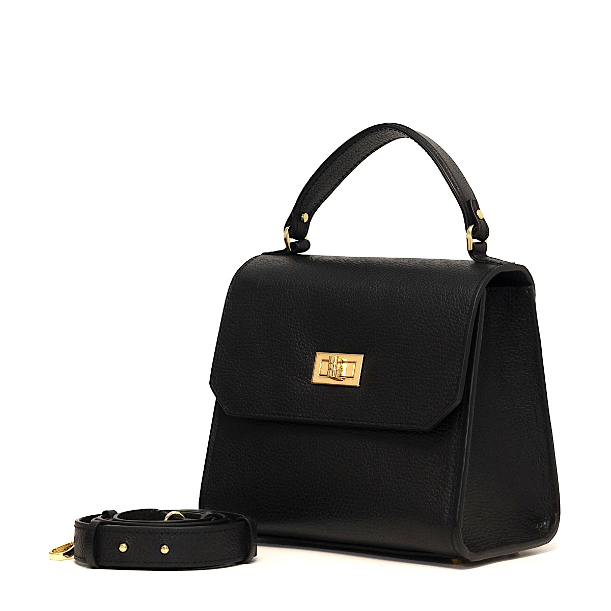LILI Negru Carotte – geantă compactă din piele naturală, cu formă geometrică și detalii rafinate. Ideală pentru ținutele de zi sau birou.