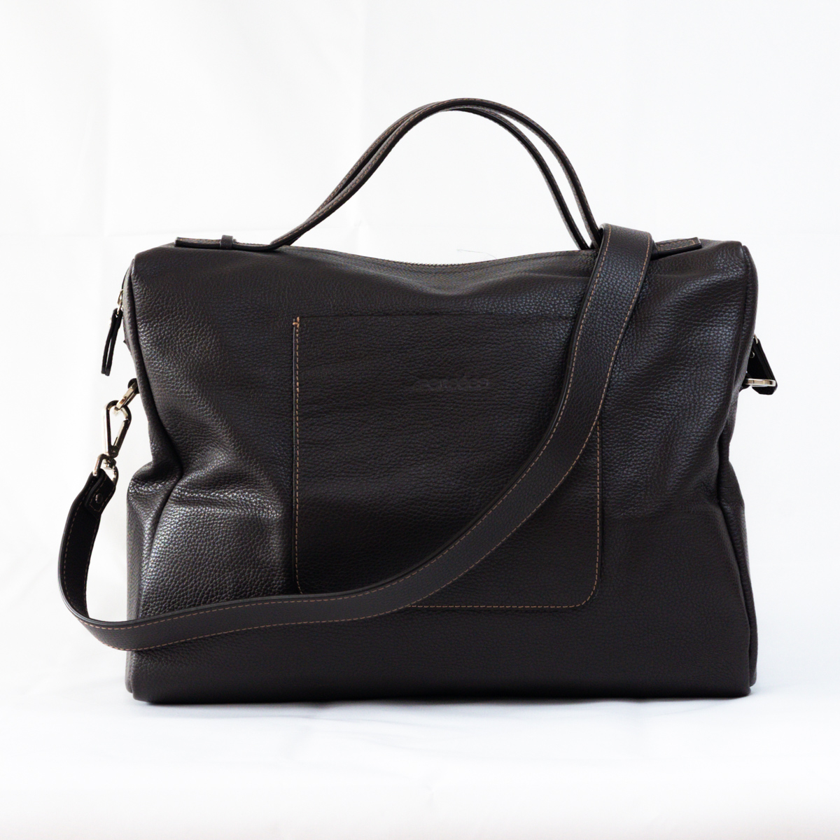 Geantă de voiaj din piele naturală – eleganță și funcționalitate în călătorii Geanta de voiaj de la Pensées este o piesă esențială, creată pentru călătorii care apreciază combinația perfectă între eleganță și funcționalitate. Aceasta nu îți poartă doar lucrurile, ci îți păstrează ritmul, stilul și amintirile, fiind alături de tine în aeroporturi aglomerate, pe străzi necunoscute și în dimineți liniștite de weekend. Realizată manual din piele naturală bovină, cu textură ușor granulată, geanta oferă un aspect sofisticat și o rezistență deosebită în timp. Interiorul spațios și bine compartimentat îți permite să organizezi hainele, accesoriile și obiectele esențiale cu ușurință. Închiderea cu fermoar metalic rezistent protejează conținutul, iar căptușeala textilă de calitate adaugă un plus de rafinament și durabilitate. Geanta este dotată cu mânere rezistente, o curea de umăr detașabilă și o bandă de fixare pe troler (situată pe partea din spate), care elimină disconfortul de a o purta în mână pe distanțe lungi. Această geantă nu este doar un accesoriu practic, ci și o declarație de stil – o piesă care te va însoți ani la rând, păstrându-și frumusețea și forma. Este ușor de asortat cu orice ținută. De ce să alegi geanta de voiaj? Se încadrează perfect în standardele pentru bagajul de mână ale majorității companiilor aeriene, fiind ideală pentru escapade de weekend, city break-uri sau deplasări de afaceri. Pielea naturală bovină, realizată manual, asigură rezistență deosebită și un aspect sofisticat. Banda de fixare pe troler și cureaua de umăr detașabilă oferă un confort deplin în timpul transportului. Designul atemporal, ușor de asortat, o transformă într-o declarație de stil. Dimensiuni Lungime: 40 cm Înălțime: 30 cm Lățime: 20 cm Materiale și detalii Exterior: 100% piele naturală (bovină) Interior: căptușeală din canvas de bumbac Închidere: Fermoar metalic rezistent Accesorii: Accesoriile metalice, curea de umăr detașabilă, bandă de fixare pe troler.