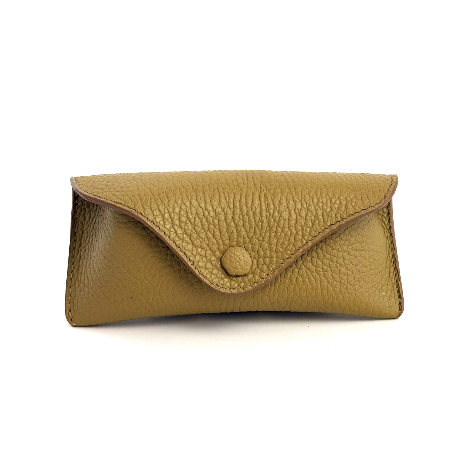 Etui pentru ochelari realizat manual din piele naturală bovină, cu interior din piele de căpriță și închidere cu capsă metalică. Protecție elegantă pentru ochelarii tăi. Produs în Republica Moldova