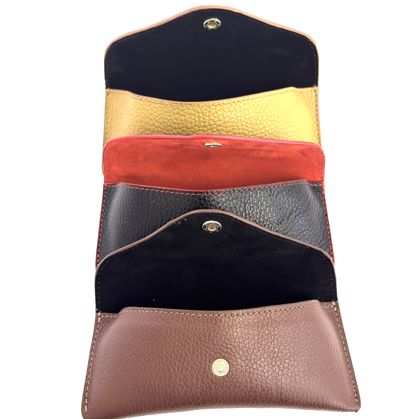 Interiorul este căptușit cu piele naturală de căpriță, delicată la atingere, care protejează lentilele împotriva zgârieturilor. Închiderea cu capsă metalică oferă siguranță și păstrează designul simplu și elegant.