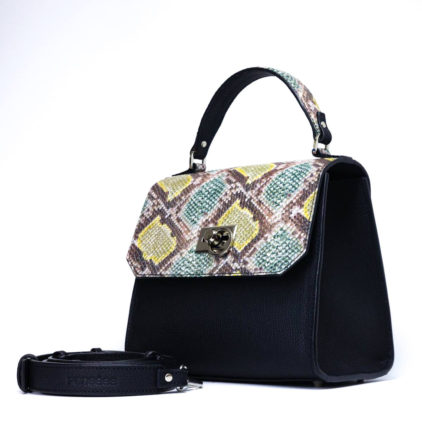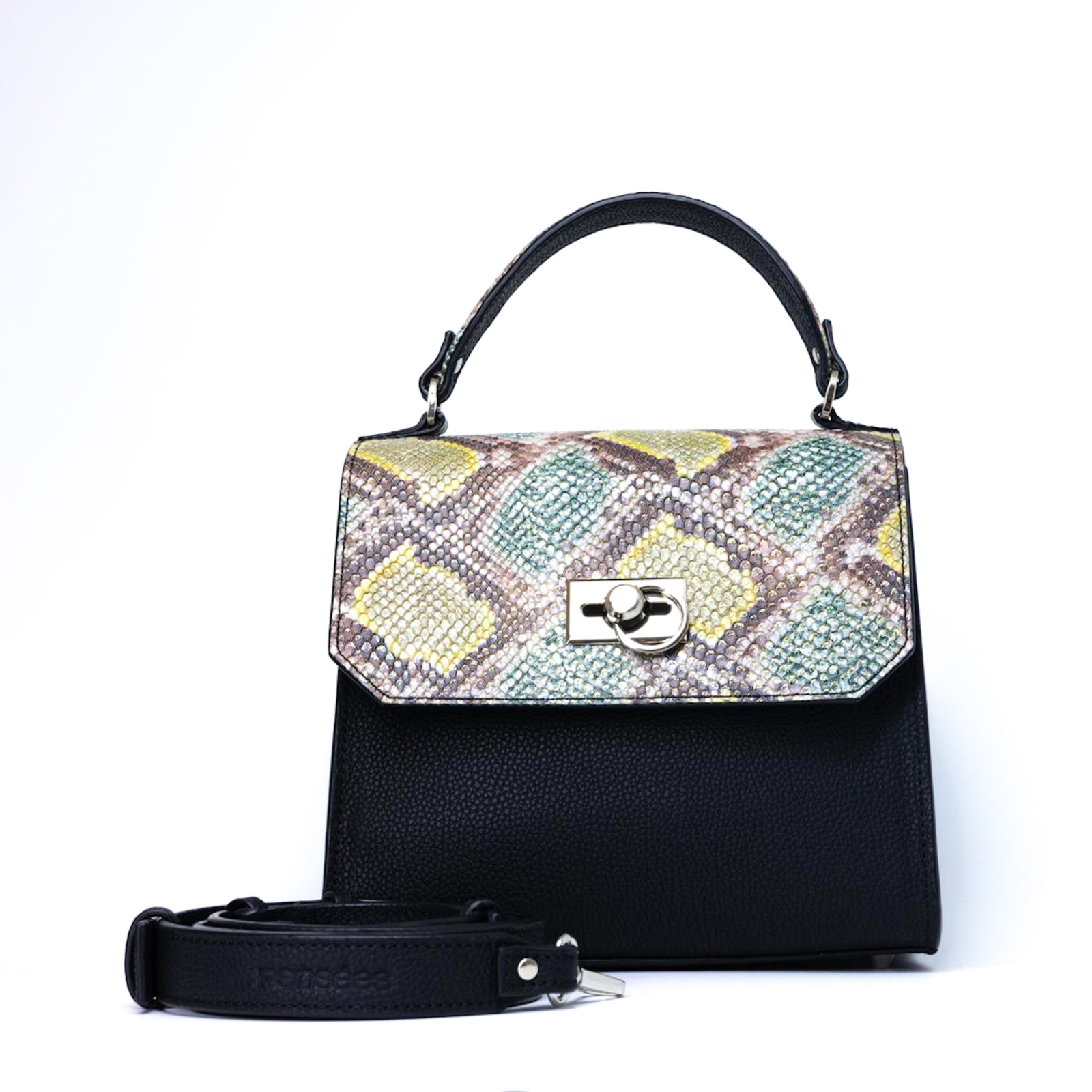 Geanta LLILI Negru Impression este un accesoriu de damă din piele naturală, care atinge un echilibru perfect între o formă clară și o funcționalitate discretă. Cu o structură rigidă și o siluetă geometrică bine definită, această geantă este o piesă practică și, în același timp, sofisticată, ideală pentru femeia care apreciază eleganța fără efort.