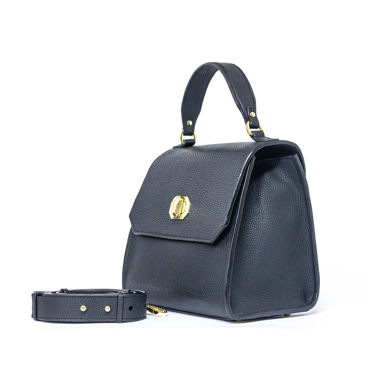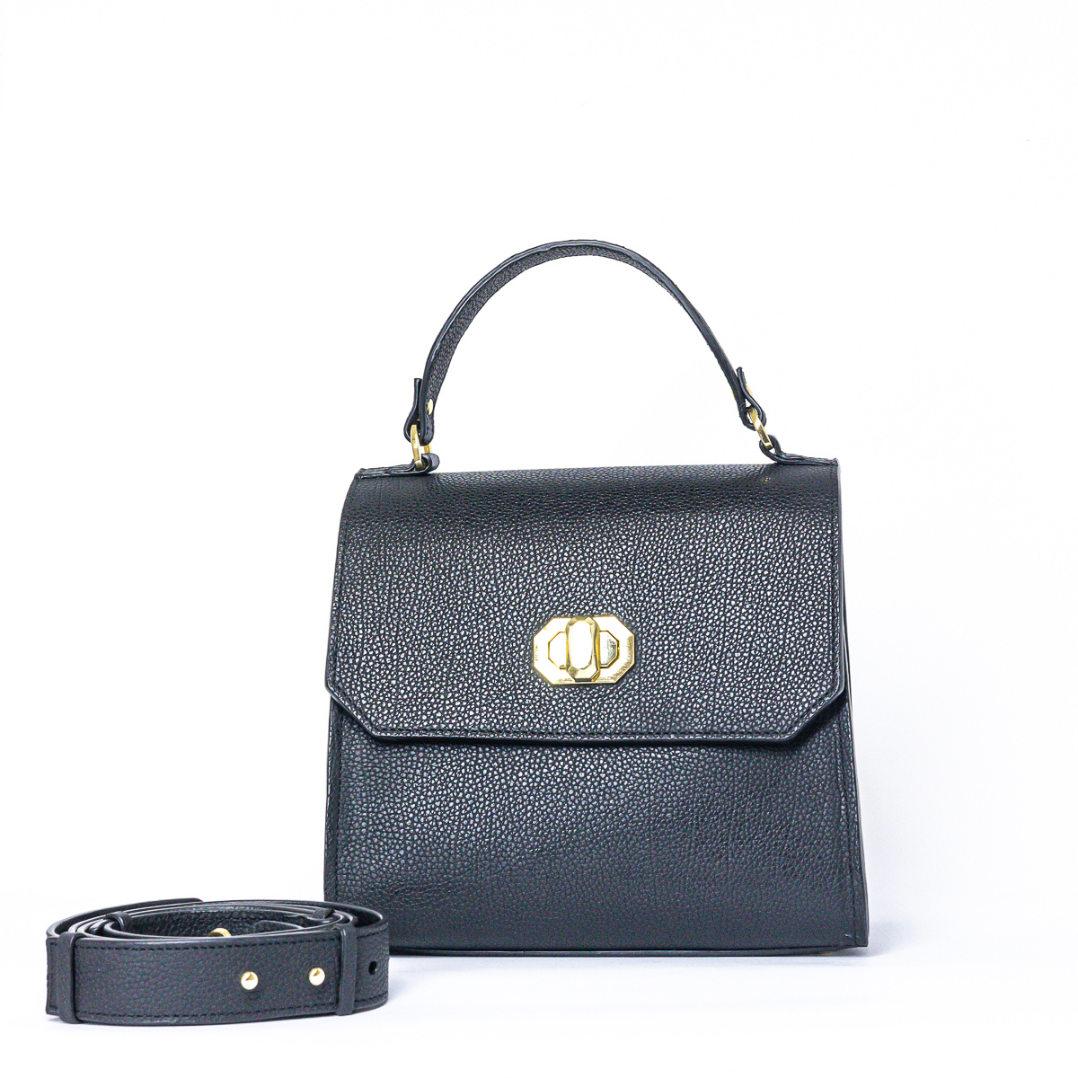 LILI Negru – geantă compactă din piele naturală, cu formă geometrică și detalii rafinate. Ideală pentru ținutele de zi sau birou