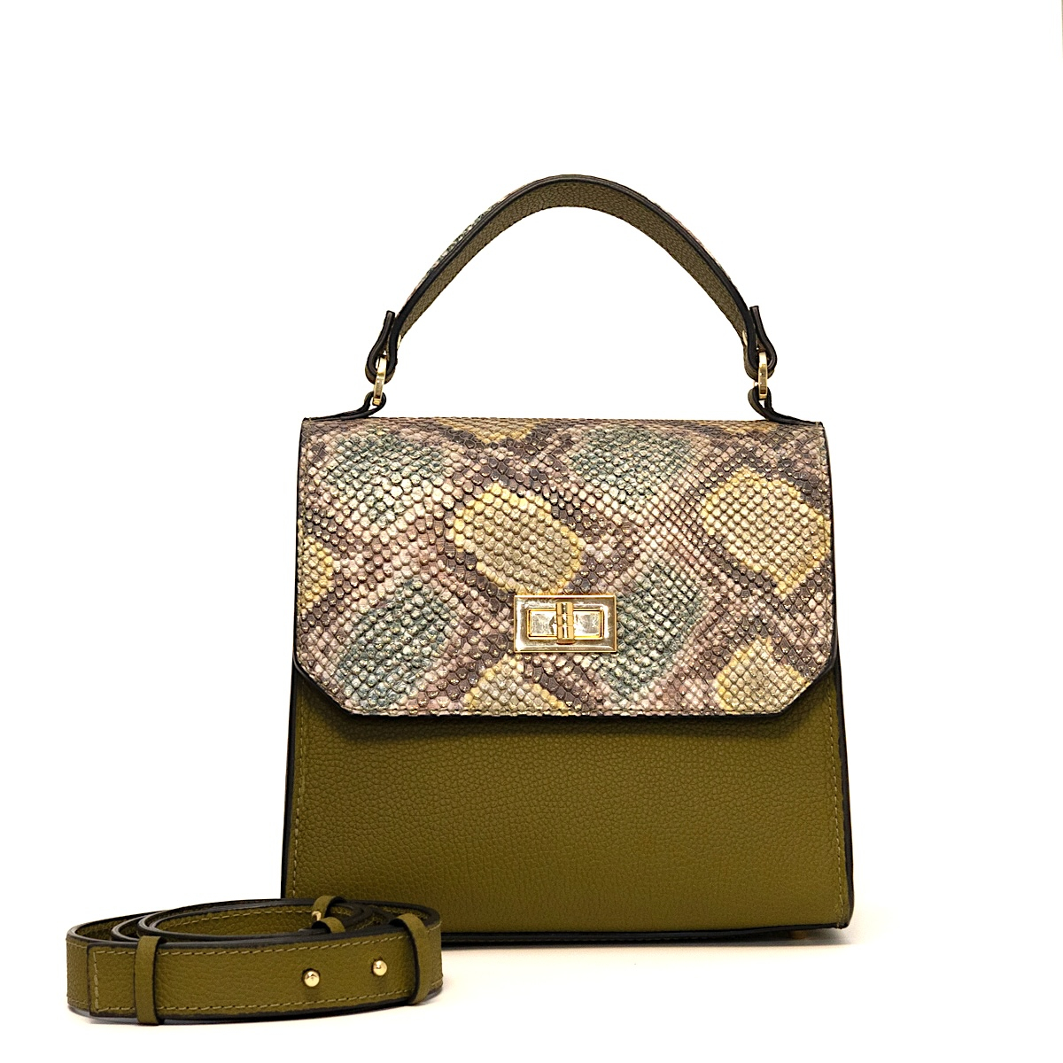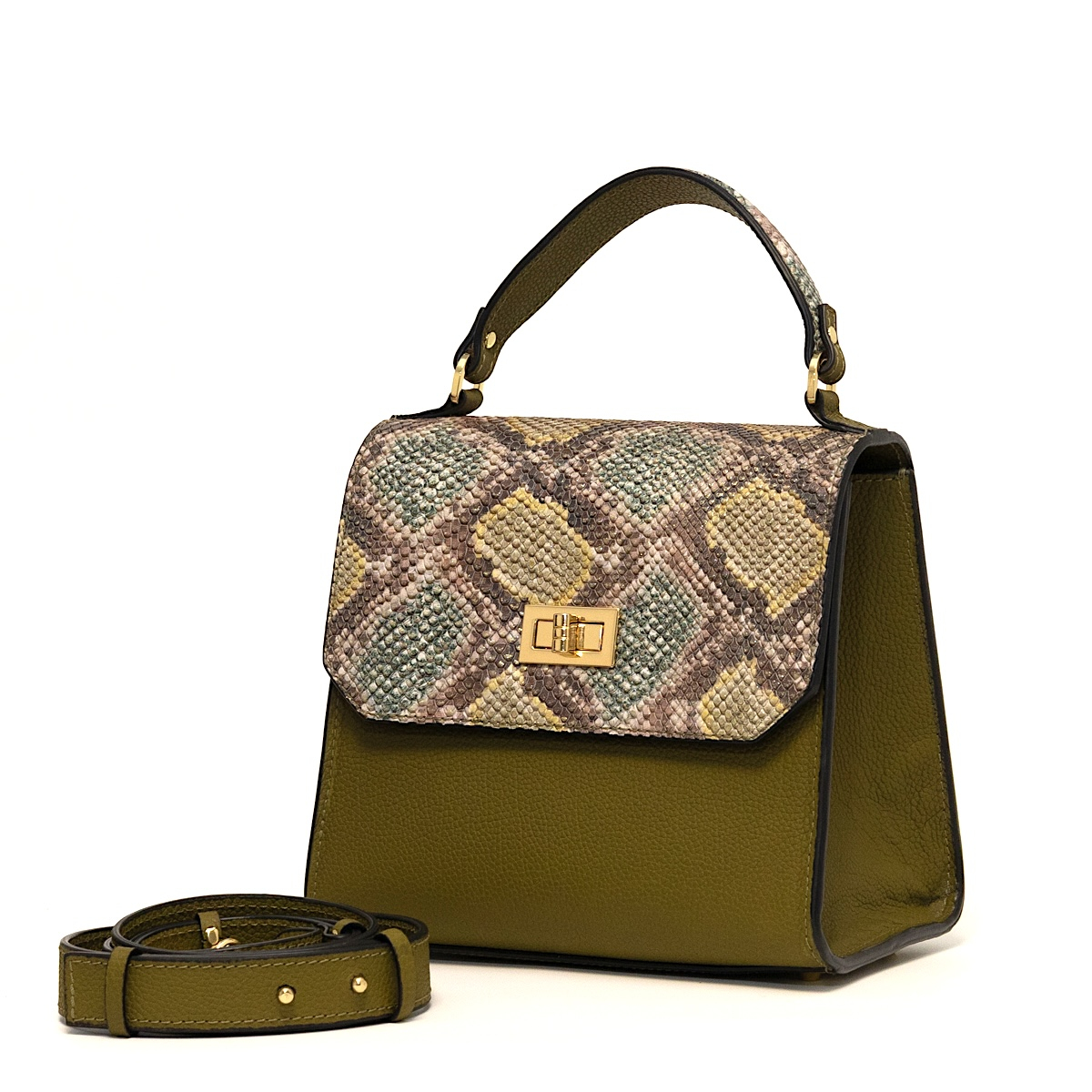 Geanta LILI Verde Olive Impression – eleganță geometrică și funcționalitate rafinată