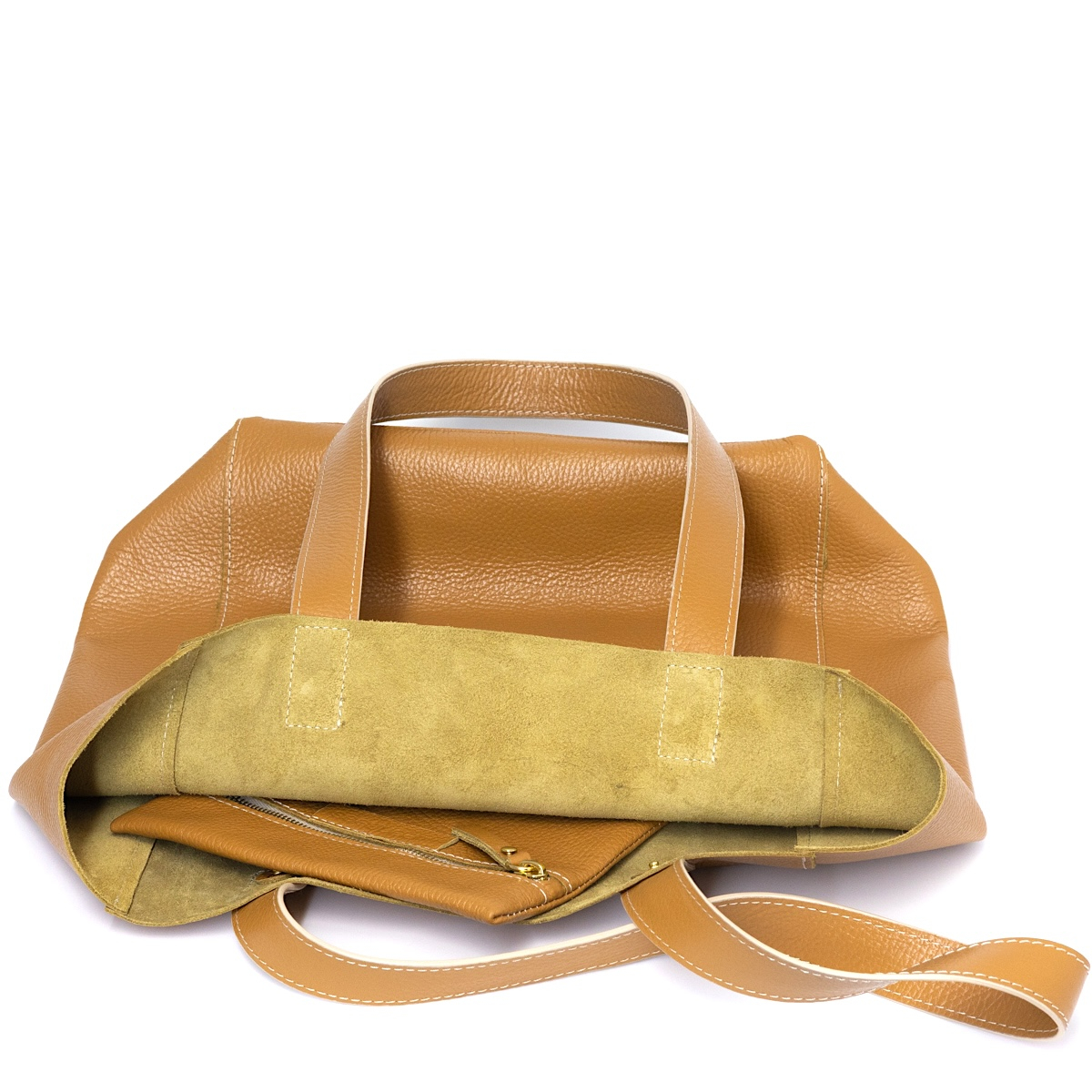 Geantă Shoppo Camel din piele naturală – shopper versatil, lucrat manual Geanta Shoppo Camel este un accesoriu de damă din piele naturală, creat cu gândul la femeile active și la zilele petrecute în mișcare. Lucrată manual din piele naturală de calitate, geanta îmbină estetica clasică cu funcționalitatea modernă. Designul său tip shopper, fără compartimente interioare separate, oferă libertate deplină pentru organizarea și transportul obiectelor voluminoase. Este alegerea potrivită pentru cele care doresc un accesoriu spațios, dar elegant. Interiorul este prevăzut cu un buzunar practic cu fermoar, ideal pentru a păstra în siguranță cheile, cardurile sau alte obiecte esențiale pe care dorești să le ai la îndemână. Baretele lungi permit purtarea confortabilă atât pe umăr, cât și în mână, iar manșeta interioară adaugă un accent sofisticat, ușor de asortat oricărei ținute. De ce să alegi geanta Shoppo Camel? Este un accesoriu funcțional, confortabil și versatil. Se adaptează cu ușurință oricărei ținute casual-chic. Pielea naturală este moale la atingere și capătă personalitate și unicitate în timp. Design atemporal, un must-have pentru iubitoarele de produse artizanale și durabile. Geanta Shoppo Camel de la Pensées este ideală pentru plimbări relaxante, cumpărături inspirate sau ca element de bază în colecția personală. Dimensiuni Lungime: 28 cm Înălțime: 31 cm Lățime: 16 cm Materiale și detalii Exterior & interior: 100% piele naturală (bovină) Buzunar interior cu fermoar din piele naturală Barete confortabile: 60 cm lungime / 3 cm lățime