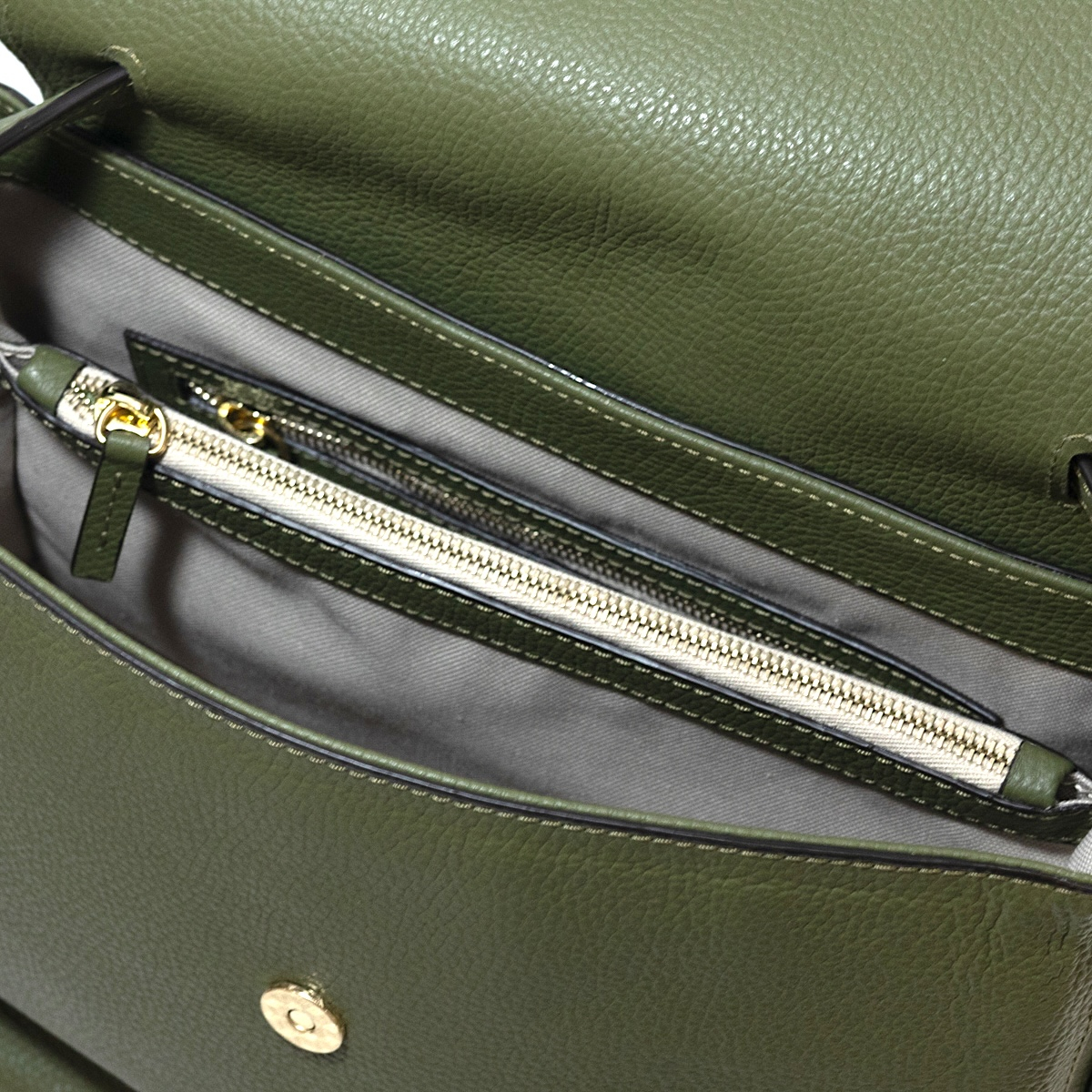 Geantă TINA Verde Olive din piele naturală – eleganță, practică și atent compartimentată